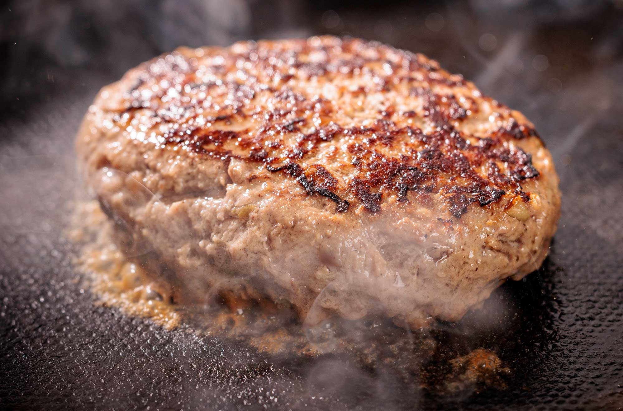 和牛吉川の特別なハンバーグ。肉汁がジュワッと溢れ出る、ふわっと柔らかい、黒毛和牛100%のハンバーグです。