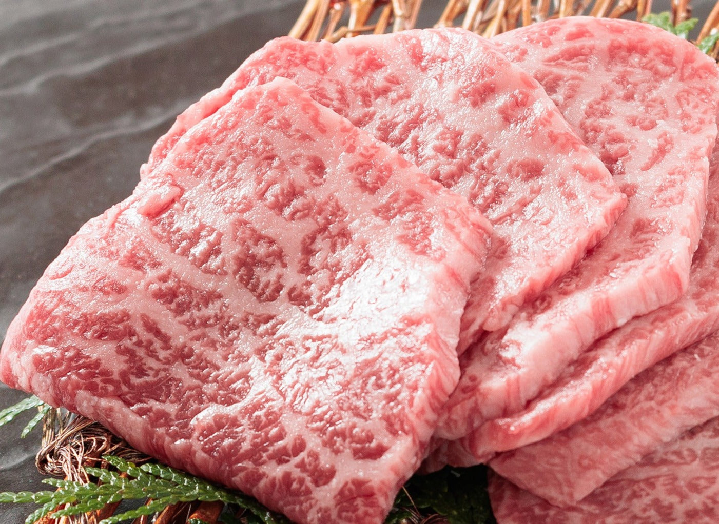 One of the representative characteristics of Wagyu beef is what is called “Sashi” or “Shimofuri.” It refers to the fat between lean meat which resembles marble, and is a characteristic of Wagyu beef only. This “Sashi” is greatly influenced by the bloodlines of cattle for generations. The years of research and crossbreeding of pedigrees brought about “Sashi,” the representative characteristic of Wagyu beef. “Sashi” is called "marbling" in English, and the B.M.S. (Beef Marbling Standard) is an evaluation standard for the quality of Wagyu beef.