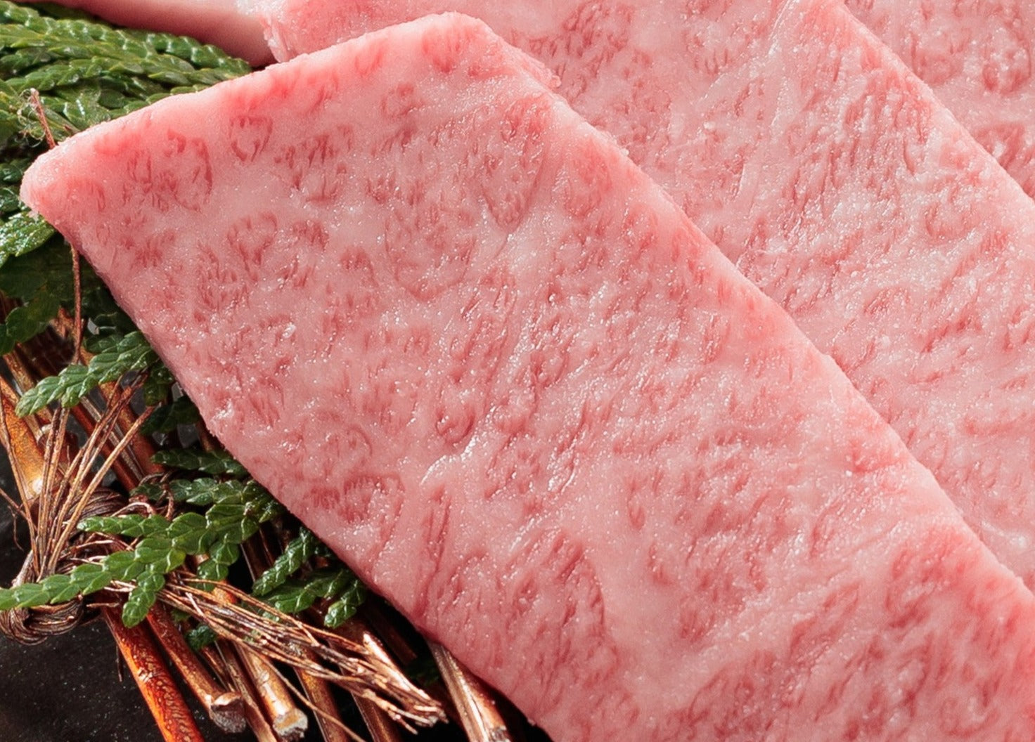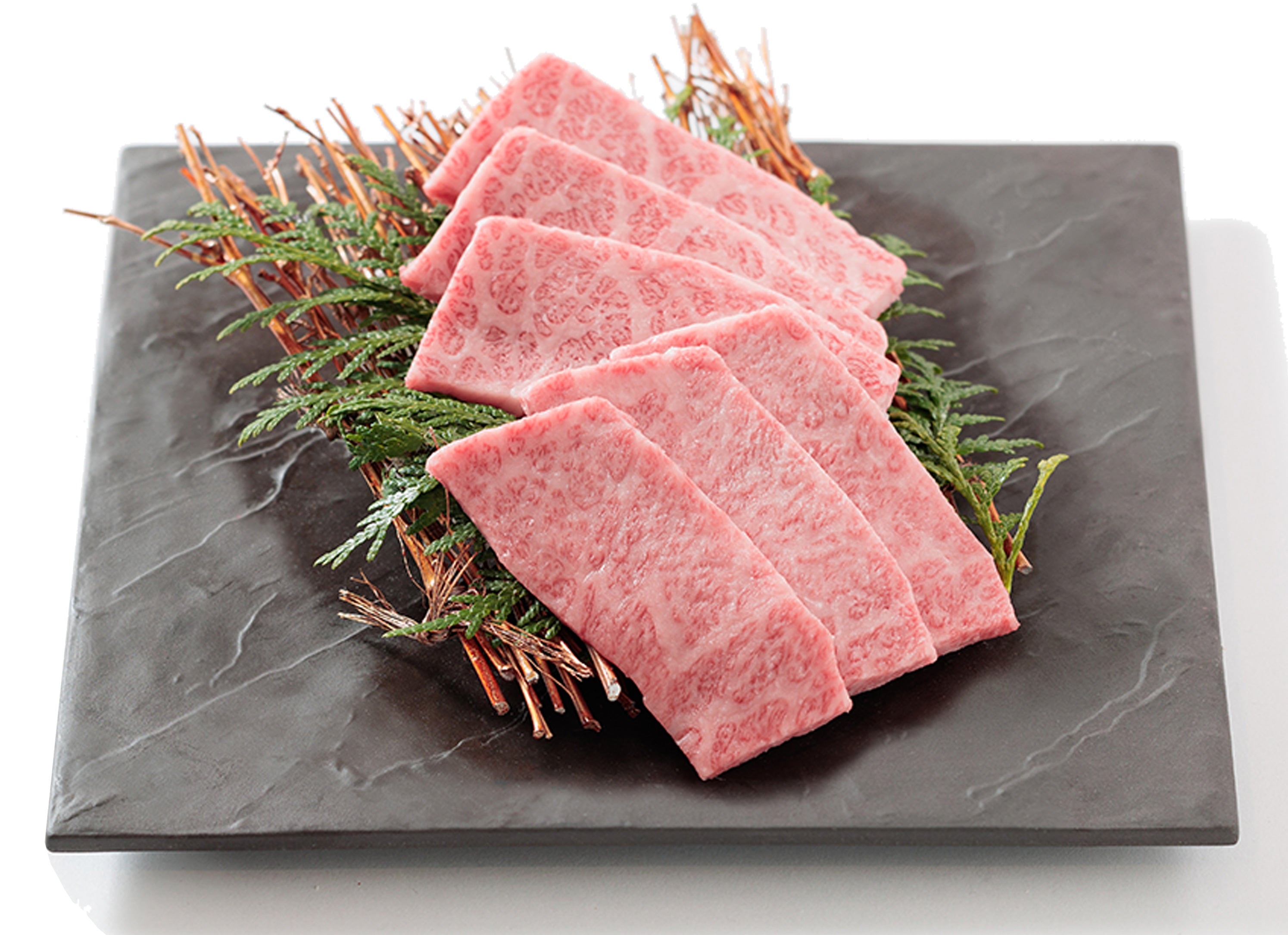 One of the representative characteristics of Wagyu beef is what is called “Sashi” or “Shimofuri.” It refers to the fat between lean meat which resembles marble, and is a characteristic of Wagyu beef only. This “Sashi” is greatly influenced by the bloodlines of cattle for generations. The years of research and crossbreeding of pedigrees brought about “Sashi,” the representative characteristic of Wagyu beef. “Sashi” is called "marbling" in English, and the B.M.S. (Beef Marbling Standard) is an evaluation standard for the quality of Wagyu beef.